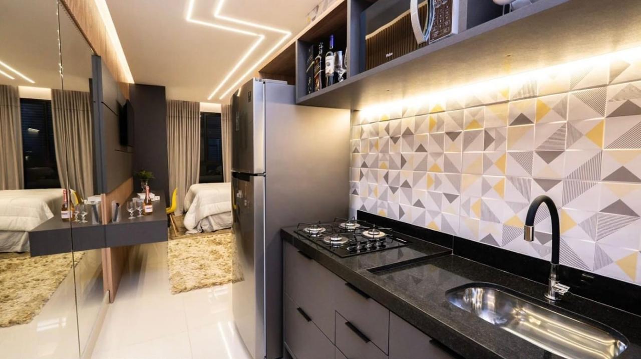 No Blue Life, as kitnets oferecem estrutura completa, com cozinha equipada, lavanderia, academia (Foto: Reprodução)