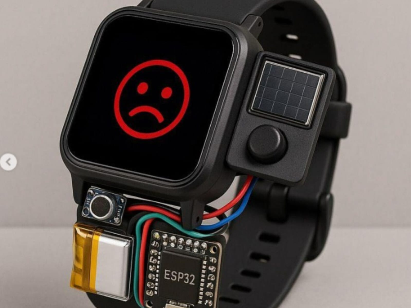 Para a construção do protótipo do smartwatch, foram utilizados materiais reaproveitados, como sucata eletrônica e placas solares de calculadoras antigas, além de componentes de baixo custo.
