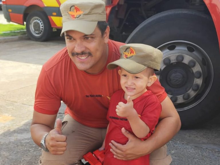“Por mais que seja algo simples para outras pessoas, meu menino achou o máximo, ficou sorrindo a viagem inteira. Ele sempre teve essa admiração pela corporação, desde quando o irmão fez um curso de bombeiro civil”, comentou.