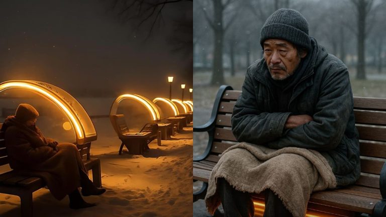 China está testando bancos aquecidos para que pessoas em situação de rua possam se manter aquecidas durante toda a noite