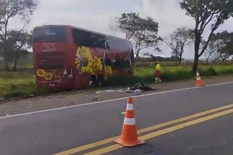 Dois motoristas de um ônibus interestadual morreram após uma colisão traseira envolvendo um caminhão, na madrugada desta quarta-feira (26), na BR-153, em trecho que passa por Hidrolina, região Norte de Goiás.
