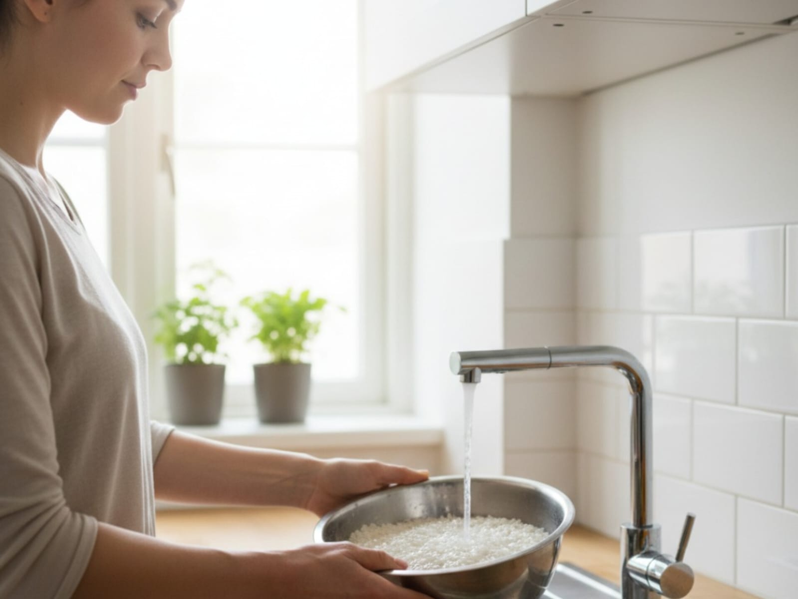 Quando a escolha for lavar o arroz, o processo também faz diferença. O recomendado é colocar a quantidade desejada em uma peneira ou escorredor, lavar em água corrente — preferencialmente filtrada — e mexer suavemente os grãos com os dedos. O enxágue deve continuar até que a água deixe de sair esbranquiçada e fique mais transparente.
