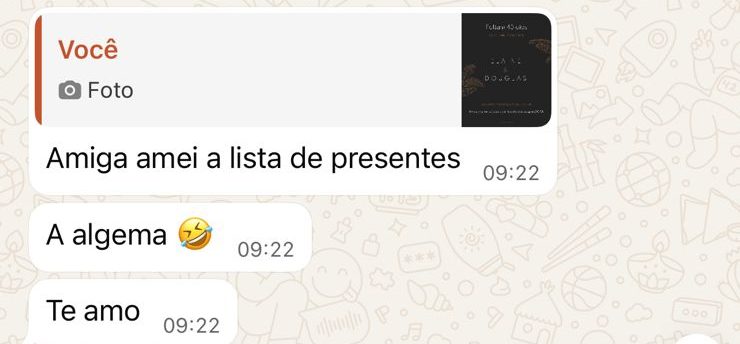 “Teve gente que viu e foi direto para o meu WhatsApp dizendo que achou engraçado. Alguns até brincaram dizendo que iam comprar”, contou, aos risos. Apesar da repercussão, a noiva reforça que o item foi incluído apenas como uma brincadeira.