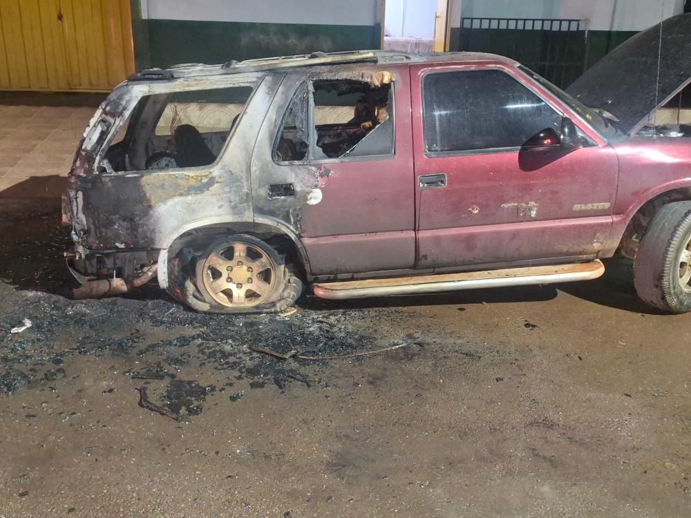 Ao sair para verificar o que estava acontecendo, encontrou o próprio veículo em chamas.