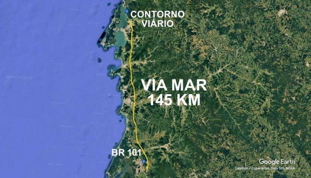 Batizada de Via Mar, a nova rodovia terá 145 quilômetros de extensão e promete reduzir deslocamentos que hoje chegam a três horas para cerca de 60 minutos, dependendo do trecho e das condições de tráfego. O investimento estimado varia entre R$ 7,5 bilhões e R$ 9,2 bilhões.