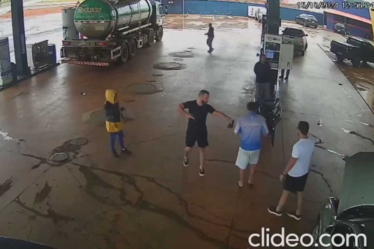 Caso aconteceu em 2024 e foi registrado por câmeras de segurança de um posto de combustíveis do município