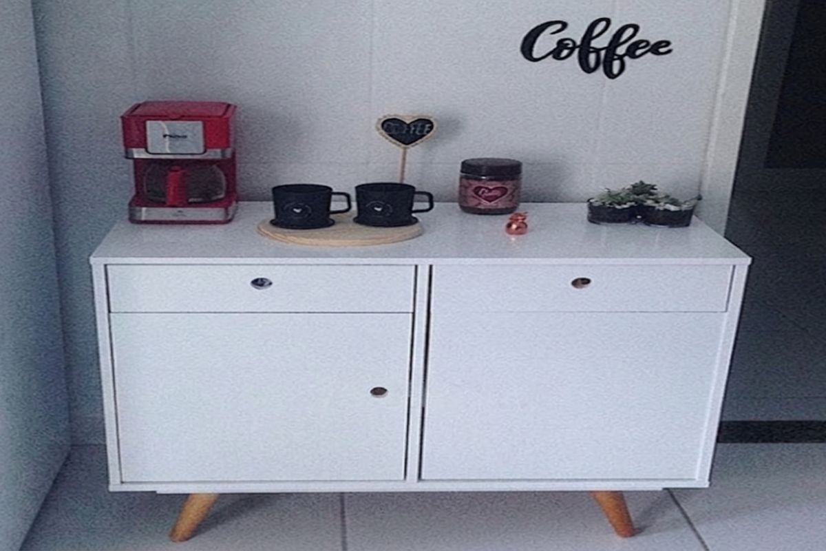 Um dos modelos mais populares é o chamado armário de café da manhã. Esse móvel funciona como um compartimento com portas, projetado para guardar itens como cafeteira, torradeira e chaleira elétrica.
