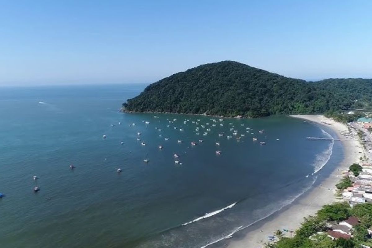 O contraste fica ainda mais evidente na Praia do Perequê, localizada em Guarujá, no litoral de São Paulo.