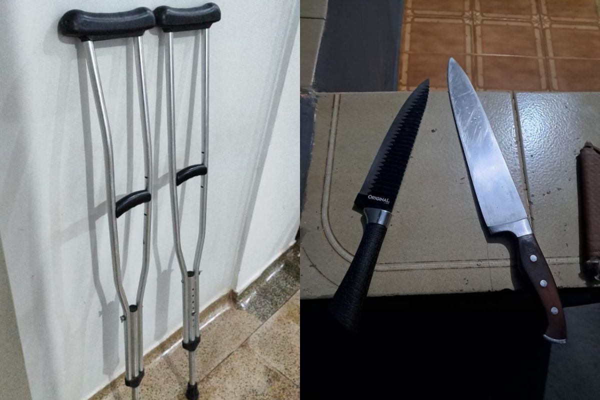 Durante o desentendimento, o homem teria utilizado uma muleta para atingi-la, causando lesões no joelho e no cotovelo.