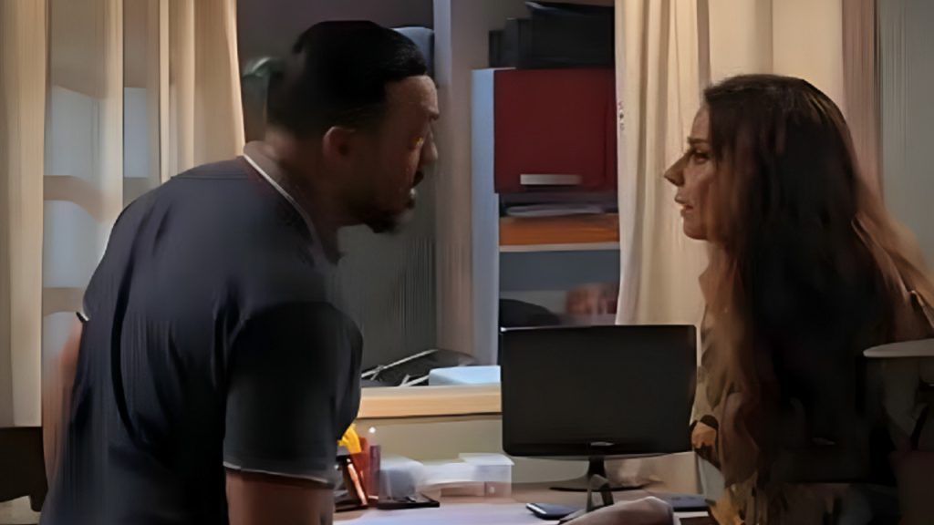 Em uma cena eletrizante, a moça decide abrir o jogo e revela que o ex-namorado está armado para matar Ferette