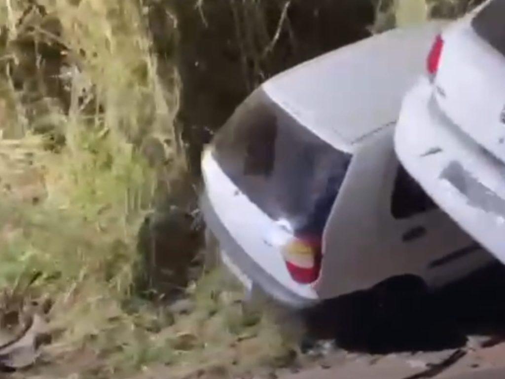 Impacto da colisão foi tanto que veículos ficaram um em cima do outro