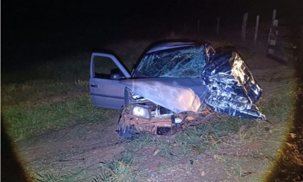 Impacto da colisão foi tão forte que um dos veículos foi jogado para fora da rodovia