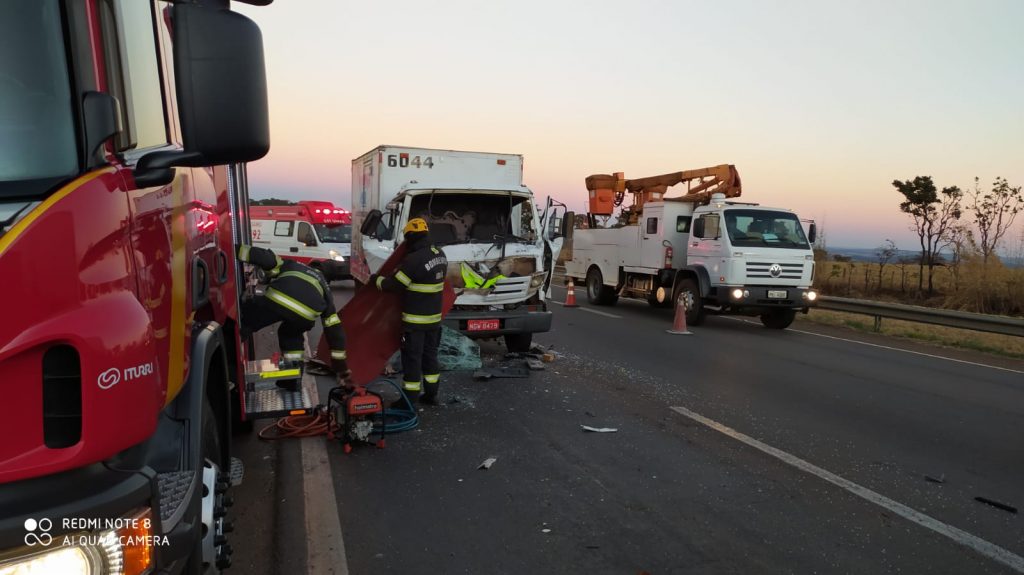 Viaturas da PRF ainda estão no local para apurar todos os detalhes do acidente e fazer o controle do trânsito