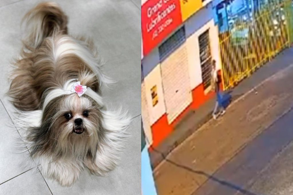 Câmera de segurança flagrou momento em que homem levou animalzinho nos braços