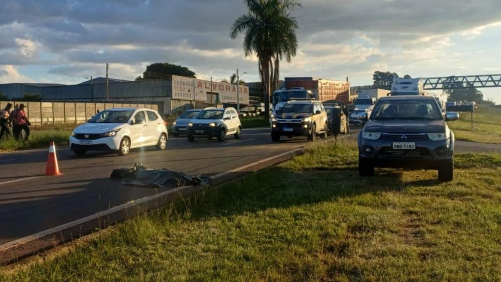 Vítima, que surgiu na pista, foi lançada ao asfalto pelo carro, que trafegava no sentido Sul/Norte