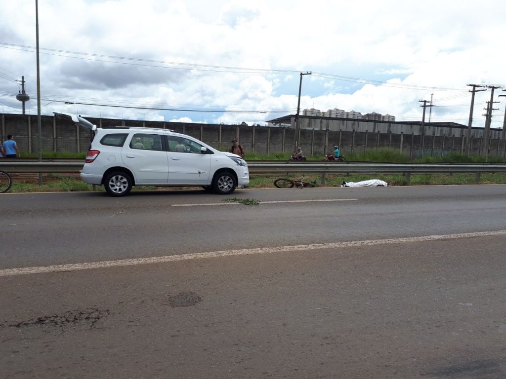 Vítima atravessava a pista empurrando a bicicleta quando foi atingido por um Chevrolet Spin branco