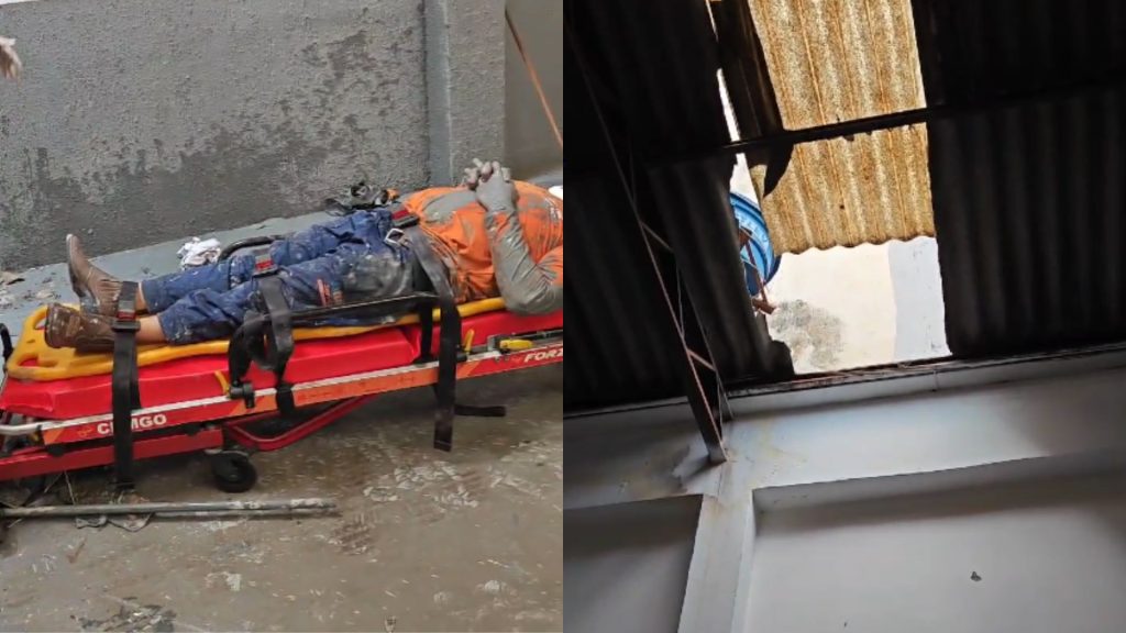 Trabalhador foi socorrido pelos bombeiros, alegando não estar sentindo os pés