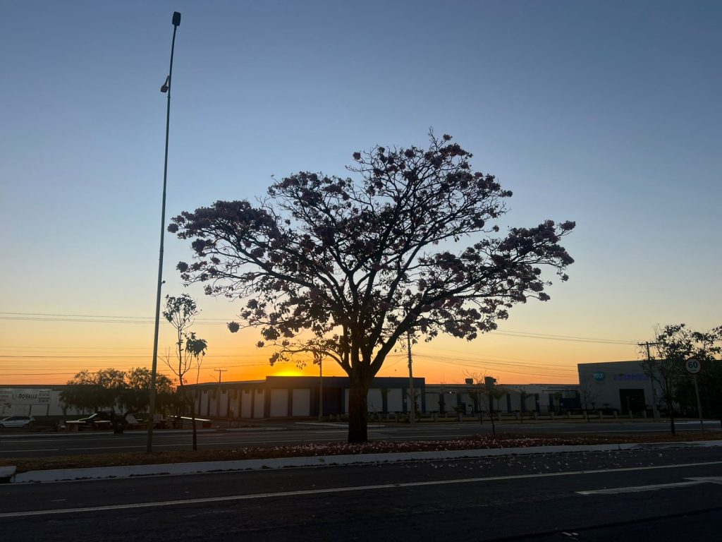 Pôr do sol e ipês em flor encantam na Avenida Brasil Sul
