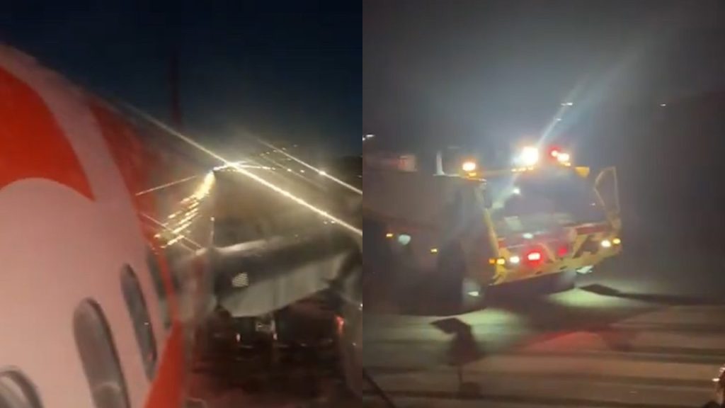 Vídeo mostra o momento em que ele fica em frente ao avião e é retirado por funcionários do terminal aéreo