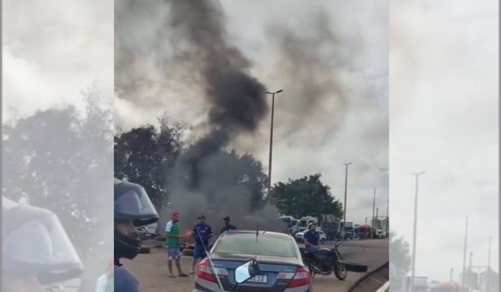 Manifestações com queima de pneus começaram no início da manhã e já causam congestionamentos