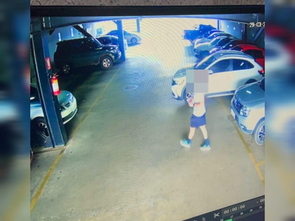 Câmeras flagram jovem riscando carro no estacionamento da Bluefit de Anápolis e dona do veículo pede ajuda