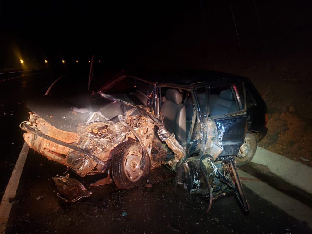 Veículo ficou destruído e equipes do Corpo de Bombeiros, SAMU e PRF tiveram de se mobilizar