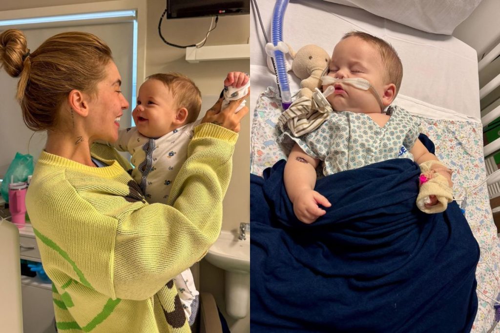 Virginia compartilha foto do filho caçula usando máscara de oxigênio na UTI e explica: “bronquiolite”