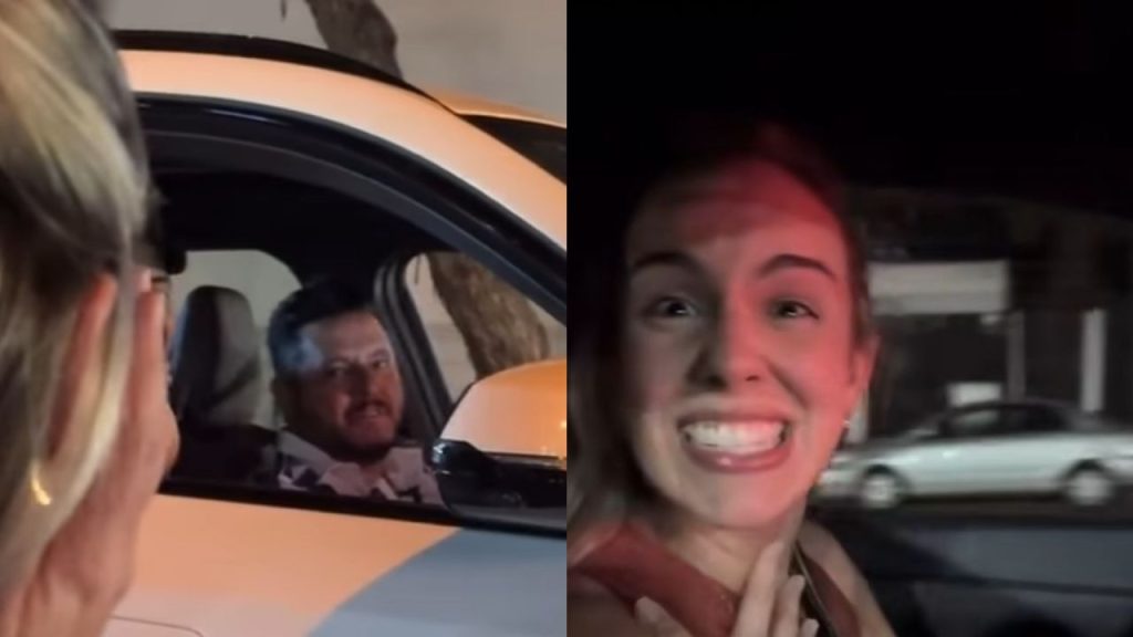 Perceber que o ídolo estava no carro ao lado, aguardando o sinal ficar verde, ela abriu a janela e não conteve os elogios