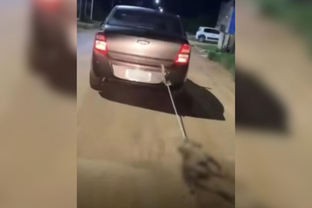 Trabalhador chegou a ser mordido pelo animal, que continuou rondando o automóvel