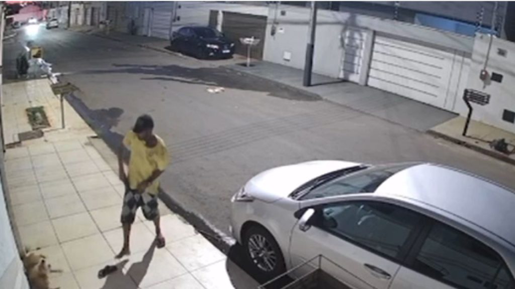 Imagens da câmera de segurança mostram momento que homem vai até animal e inicia agressões