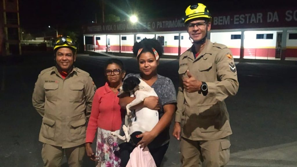 Chamada Aurora, a cachorra a foi libertada pelos bombeiros e não teve ferimentos