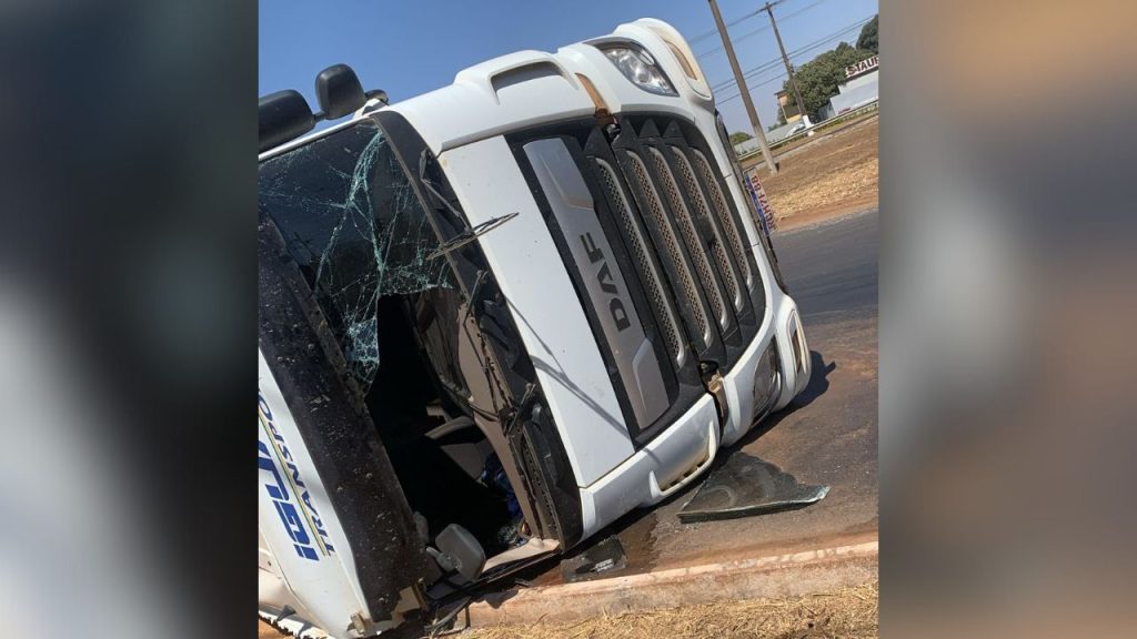 Situação aconteceu nas proximidades do Posto Marajó, onde o condutor acabou perdendo o controle do veículo, que puxava ao menos dois bitrens