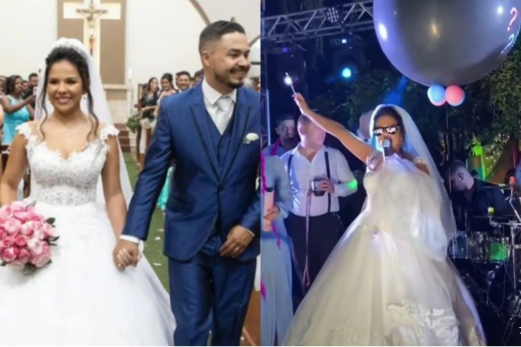 Além da notícia inesperada, casal ainda realizou, na mesma noite, o chá revelação do gênero da criança que a noiva estava esperando