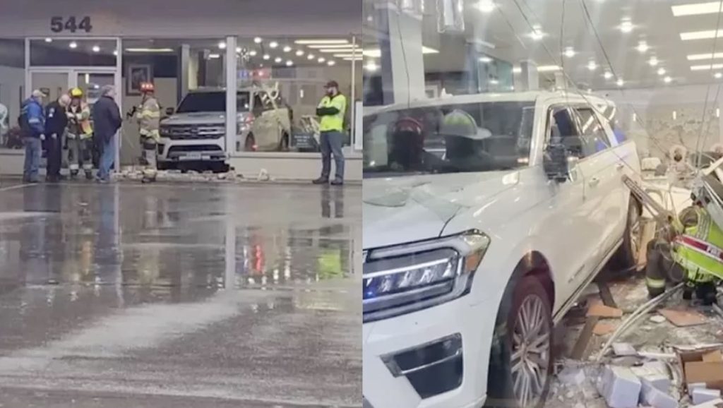 Mulher manobrava no estacionamento quando, de repente, engatou a ré e invadi o estabelecimento