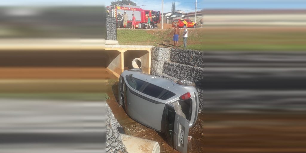 Mulher estava dentro do veículo e precisou ser resgatada de cerca de dez metros de profundidade
