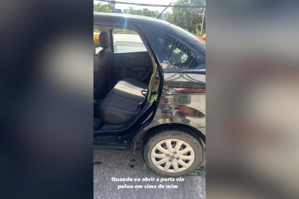 Ex- Fazenda também publicou vários registros mostrando o animal andando pelo veículo