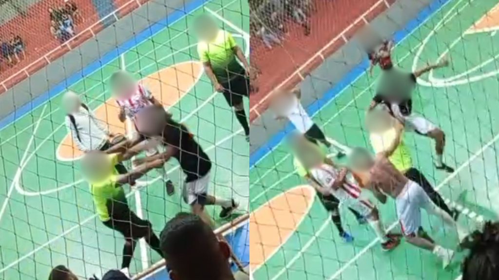 Jogo de futsal acaba em pancadaria após desentendimento entre árbitro e jogador