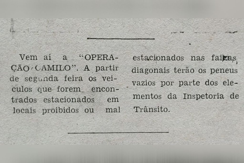 Medida teria sido anunciada como forma de evitar acidentes no município, já que o Código de Trânsito Brasileiro só foi criado 30 anos depois