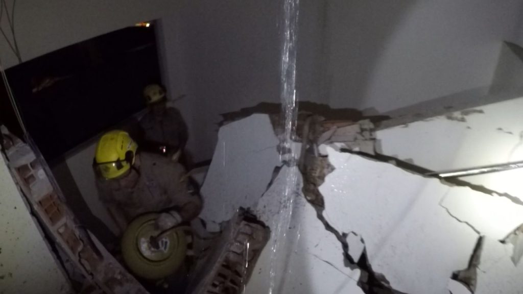 Gravação divulgada pela corporação mostra paredes da residência destroçada e vazamentos de água pelo local