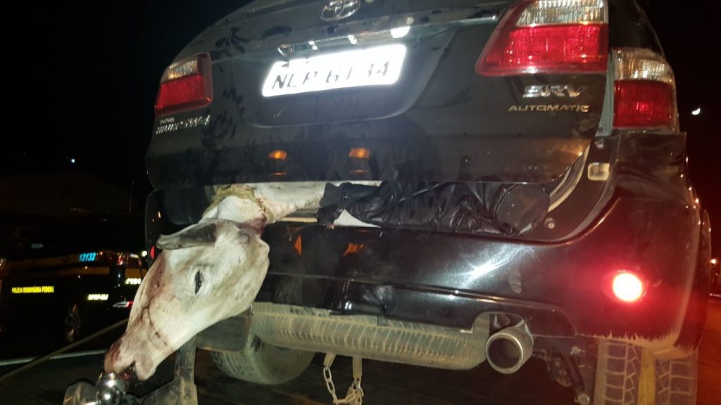 Quadrilha estava com caminhonete roubada, armas de uso restrito das forças armadas e uma vaca morta dentro do porta-malas