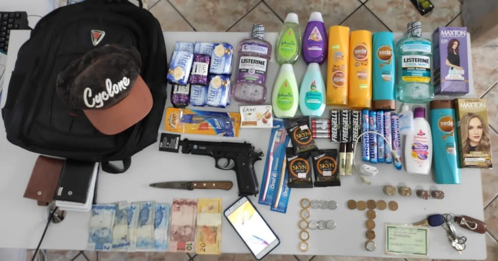 Eles foram pegos pela PM 20 minutos após cometer o crime