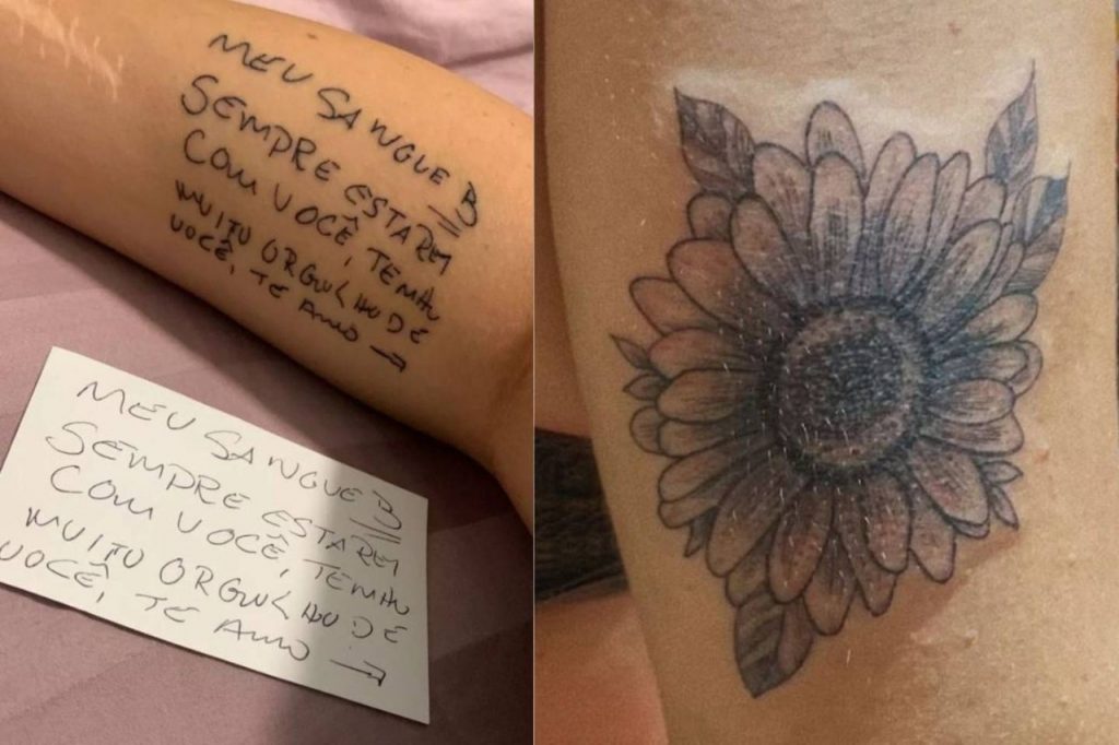 Além do recado tocante, a jovem também quis deixar marcado no corpo outros dois desenhos como lembrança