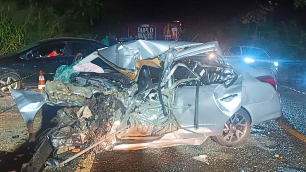 Com o choque, o carro teve grandes danos e ficou com a parte frontal destruída