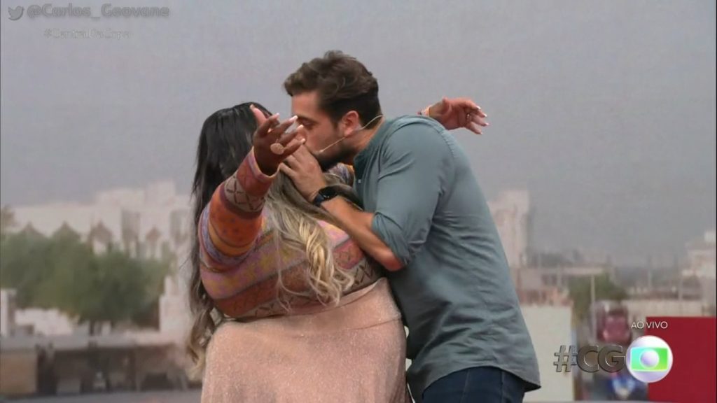 Rafael Cardoso beija Jojo Todynho ao vivo durante ‘Central da Copa’