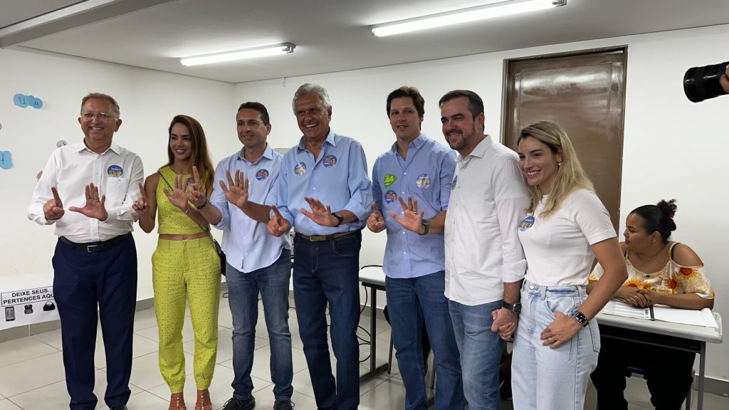 Candidato estava acompanhado do governador Ronaldo Caiado e vice, Daniel Vilela