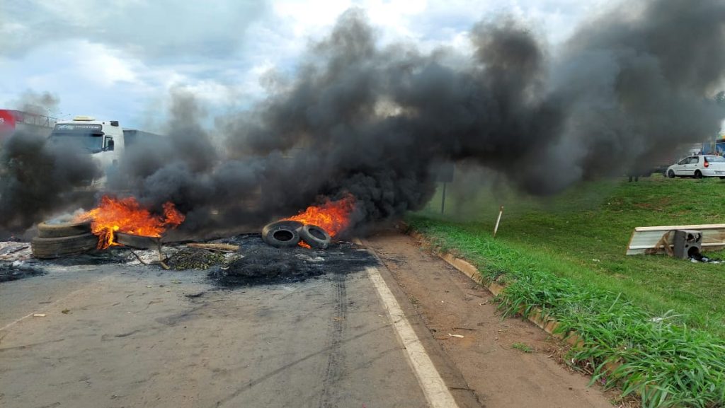 Manifestantes utilizam de pneus e papelões queimados. Em algumas partes, caminhões fazem o bloqueio