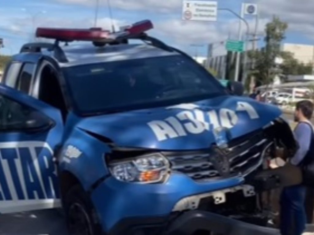 Viatura e moto se envolvem em acidente na Avenida Brasil, em Anápolis
