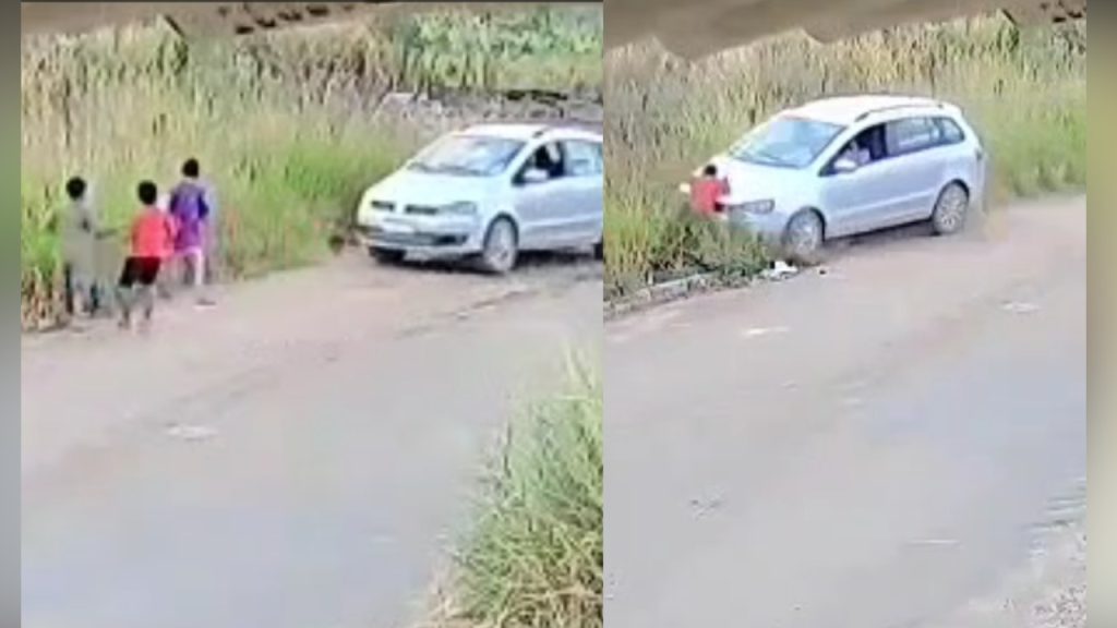Menores ainda correram para longe da rua, mas foram perseguidos pelo condutor do carro, que acertou um deles em cheio