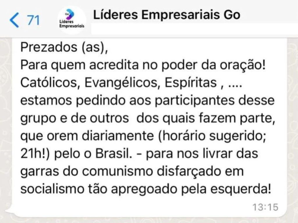 Vazam mensagens de WhatsApp de empresários de Goiás pedindo orações para que Bolsonaro vença no 1º turno