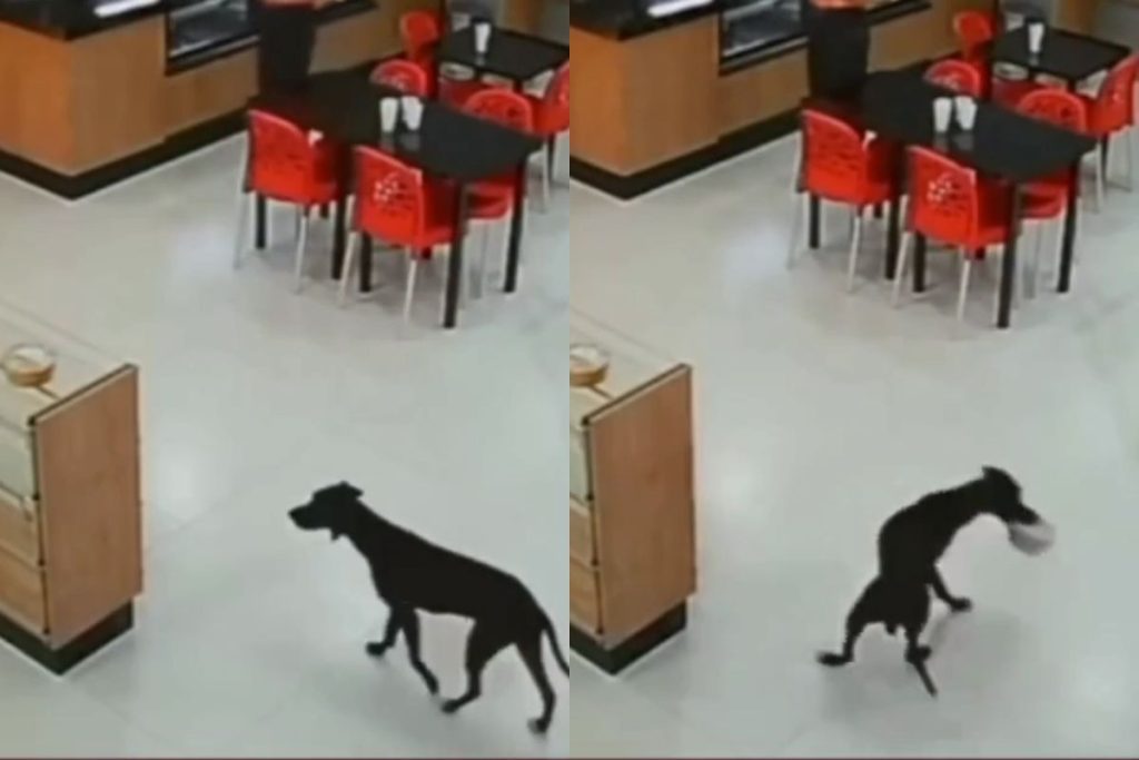 Cachorro é pego no flagra “furtando” bolo de padaria em Goiás